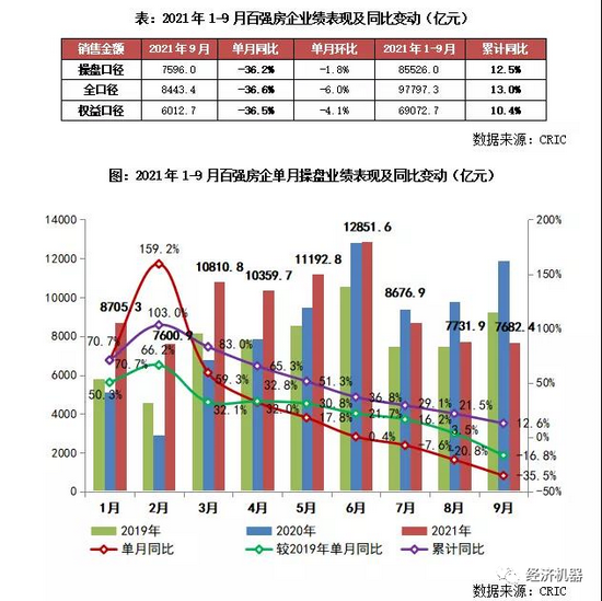 据统计,9月百强房企房地产销售金额同比大幅下降36.6%,环比下降6%。无论是同比,还是环比,都较8月份显著恶化。百强销售面积同比下降幅度超过40%,其中恒大9月份销售额仅为53亿元,同比下滑超9成。