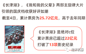 另外,不少人选择在家周边游园、逛展、看演出,大麦数据显示,国庆档全国演出观演人次较春节档提升了4倍。灯塔专业版数据显示,截至2021年10月4日,国庆档累计票房25.72亿元,高于去年同期。再现抗美援朝长津湖战役的史诗巨制《长津湖》截至5日累计票房就已超过22亿元,打破了13项中国影史纪录。